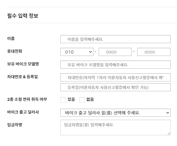 현재 BMW 라이더분에 한해서, 아래↓ 정보를 입력하시면 되구요